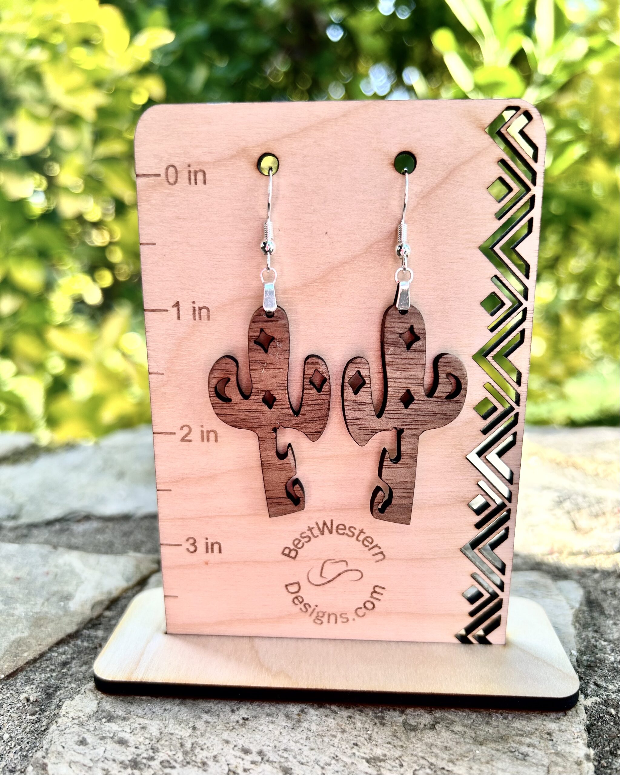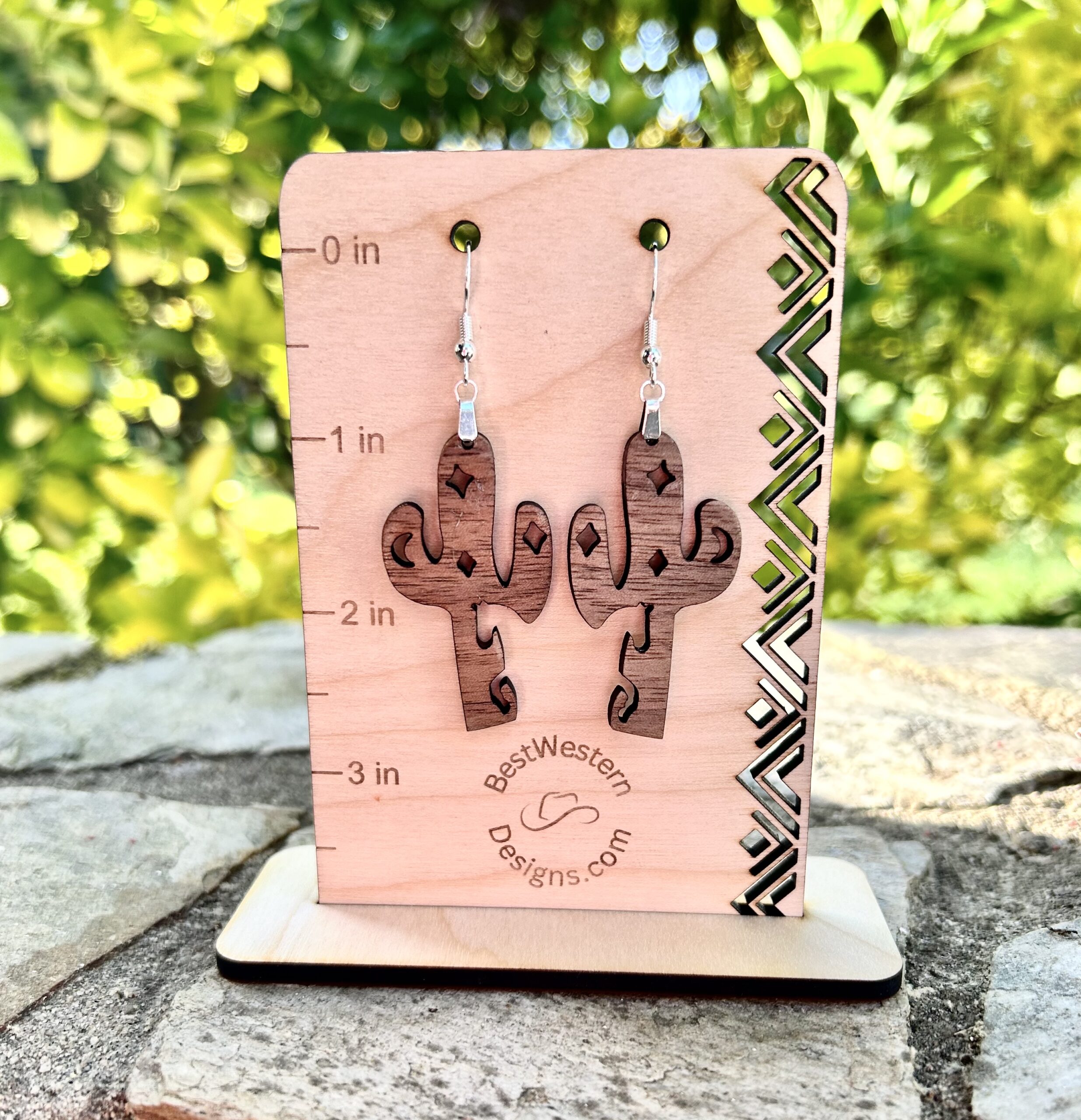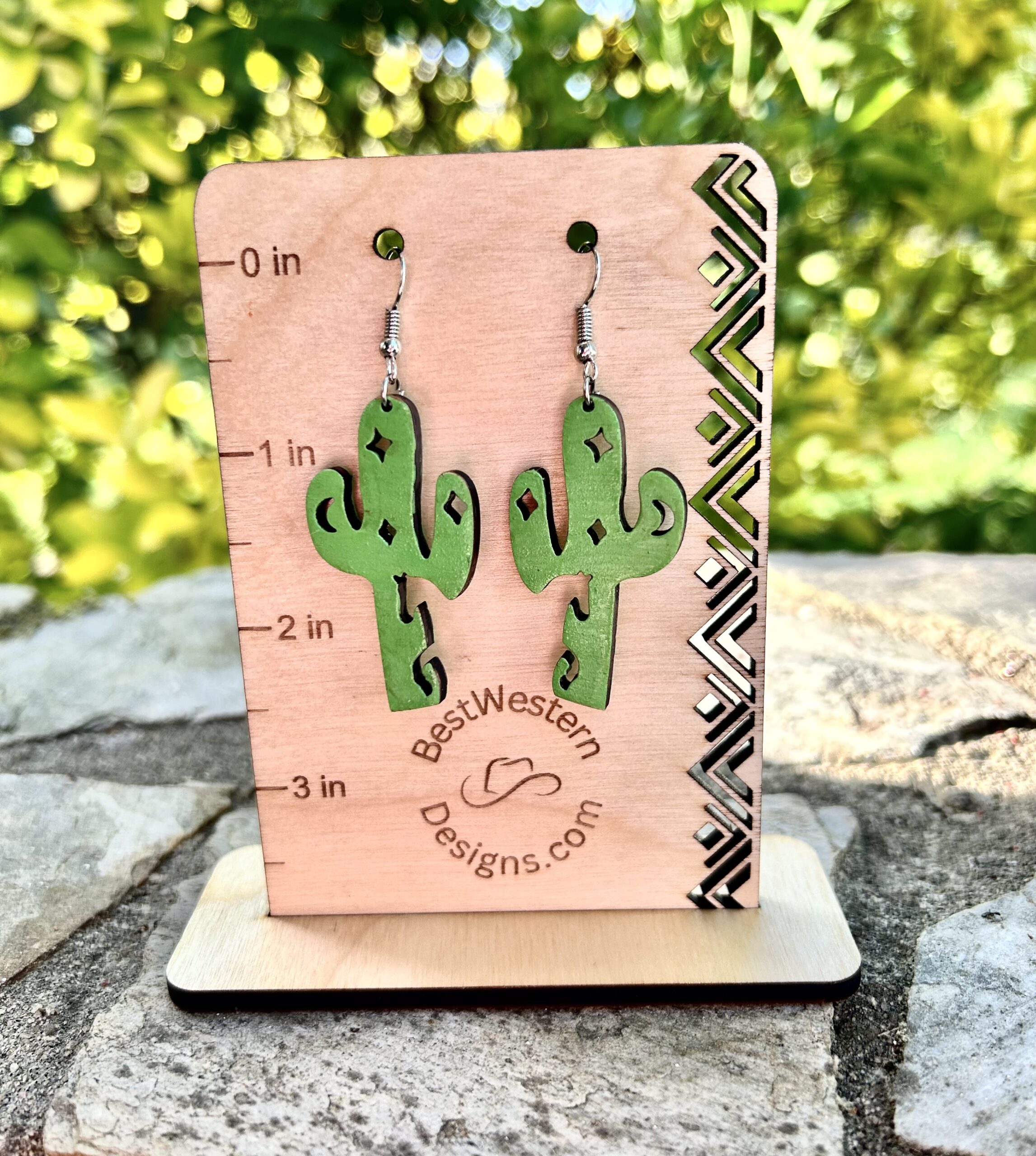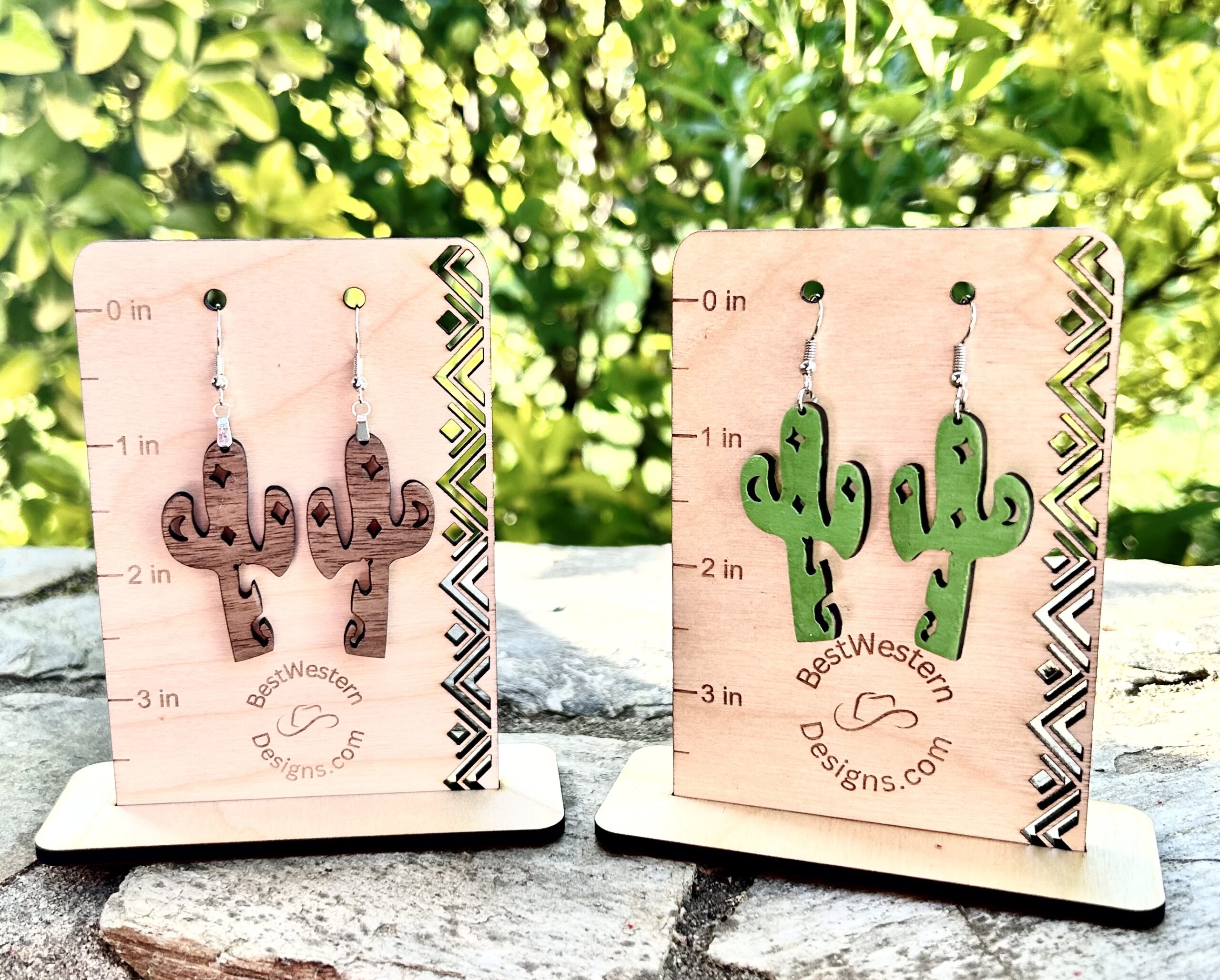 Cactus earrings,Western cactus w/horse cutout earrings, Dangle cactus earrings, Western style earrings, Earrings,Hand Painted Laser Cut Wood