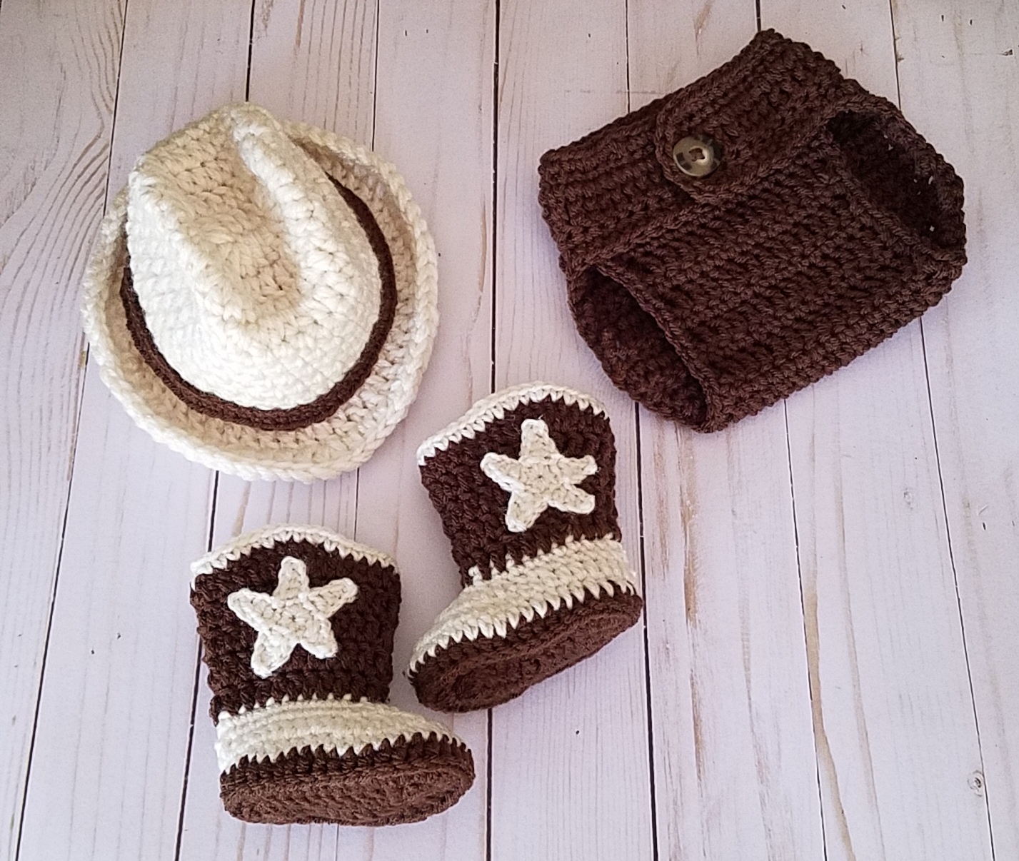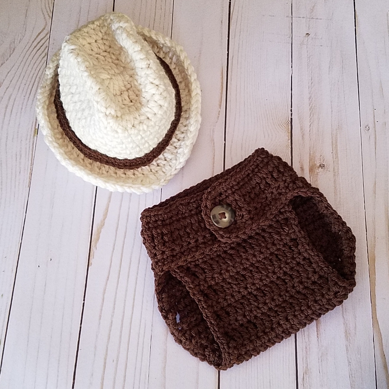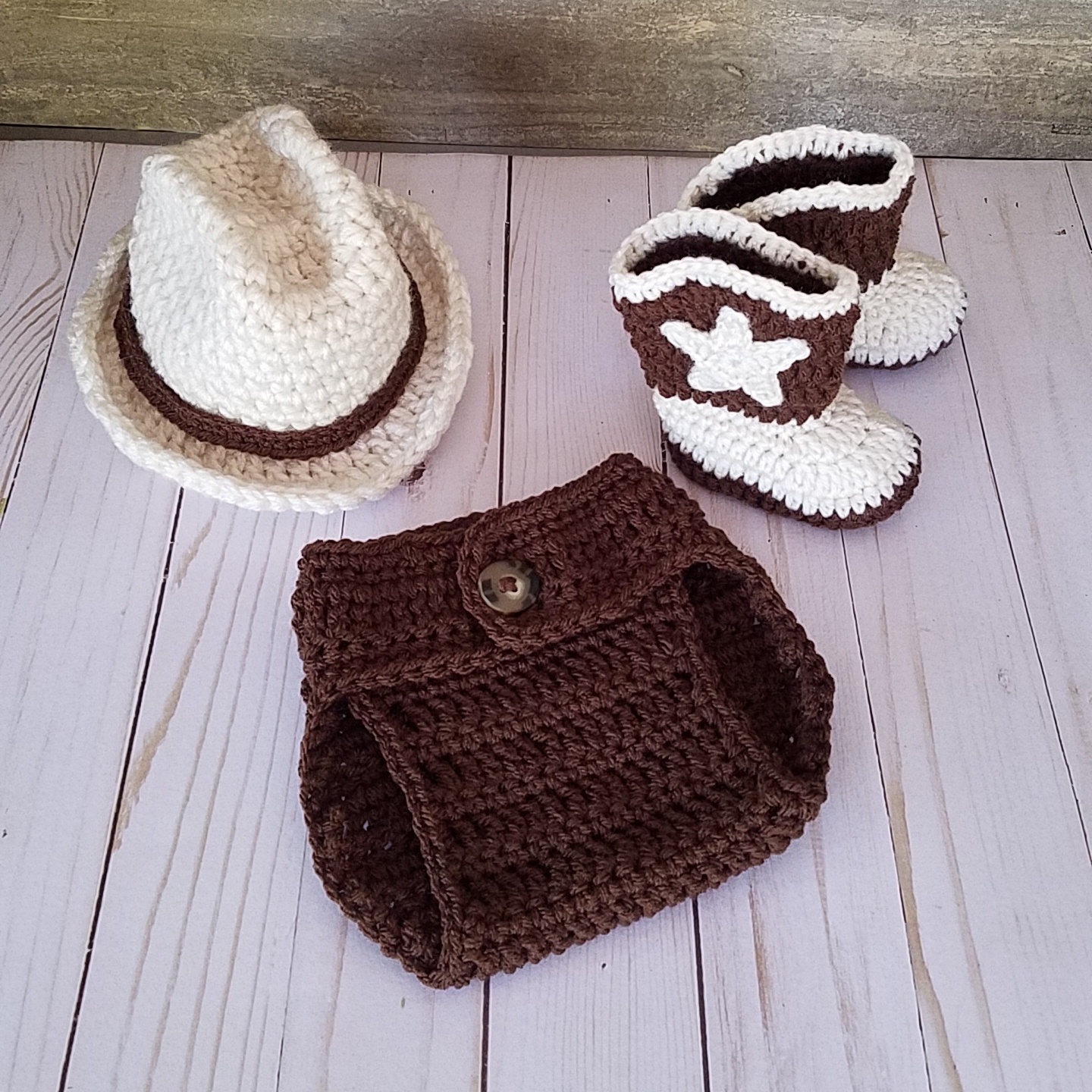 This listing is for a sweet Crochet Cowboy hat, Cowboy boots & diaper cover set!! This sweet Cowboy Set is the perfect Newborn Photo Prop for any occasion.