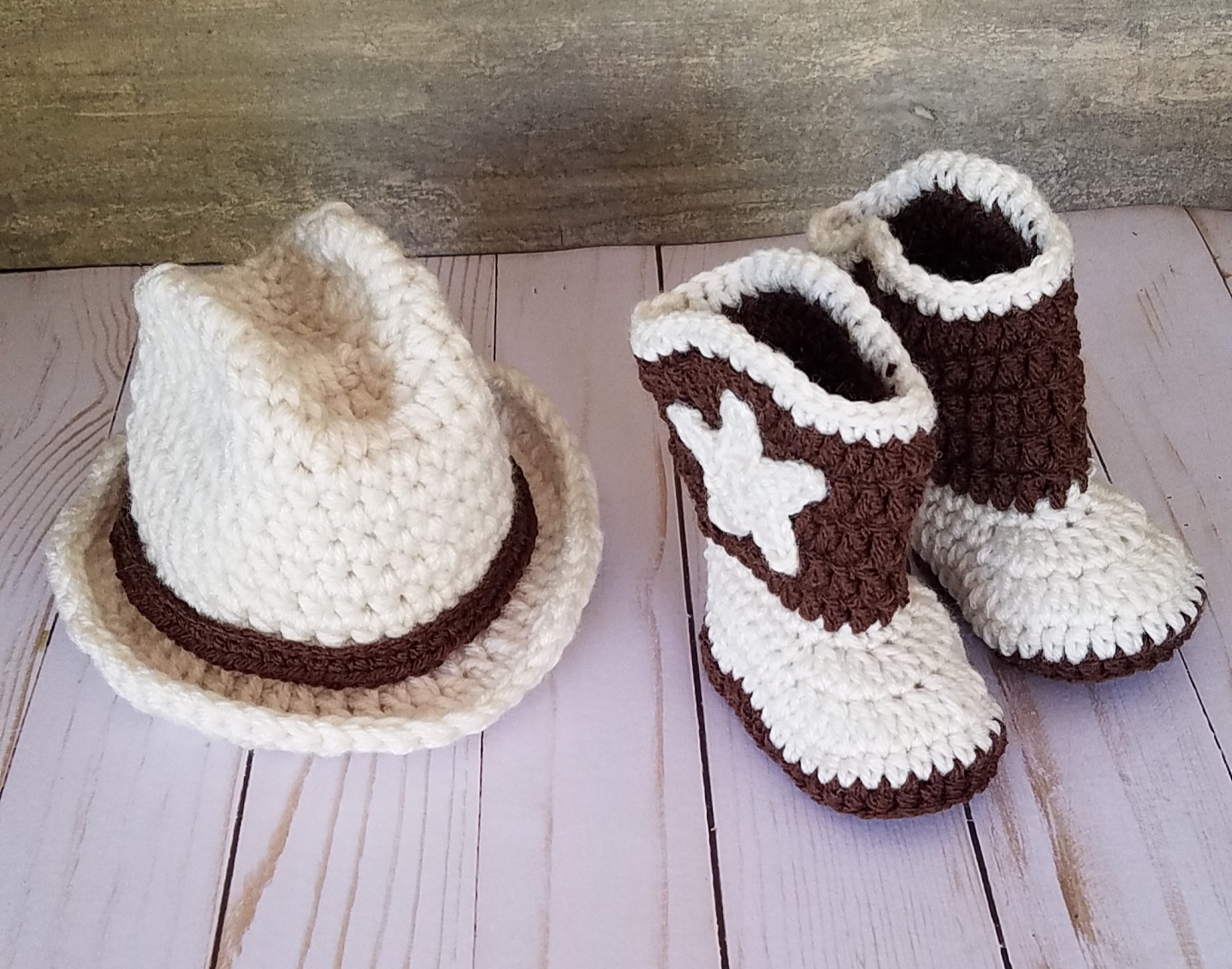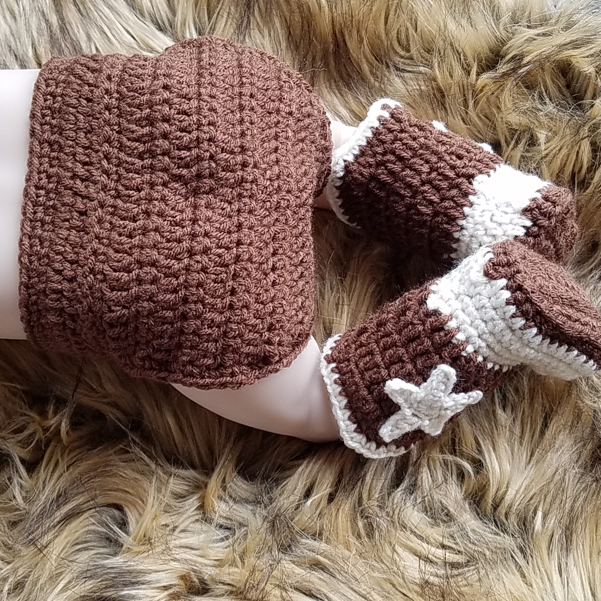 This adorable Cowgirl Set is created with a soft acrylic yarn in country brown, & linen .
