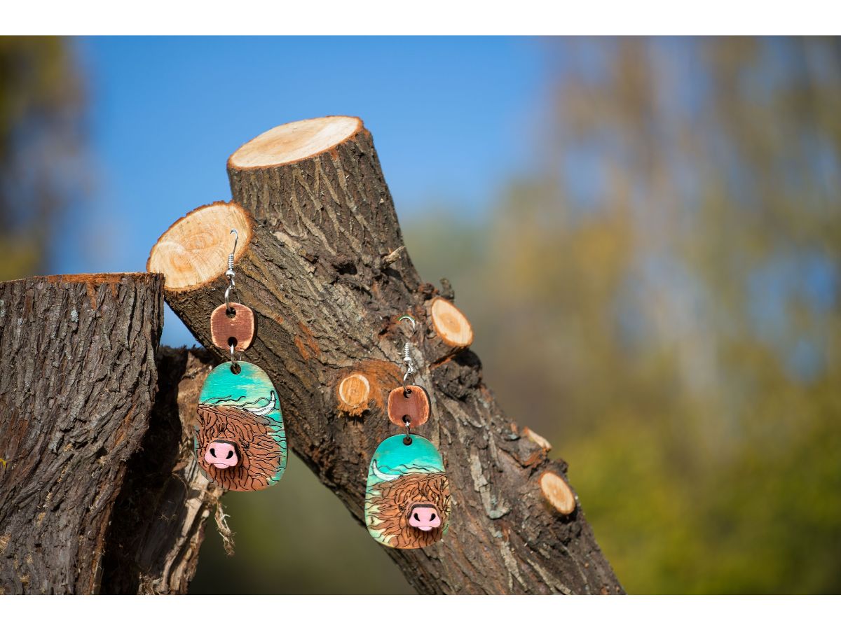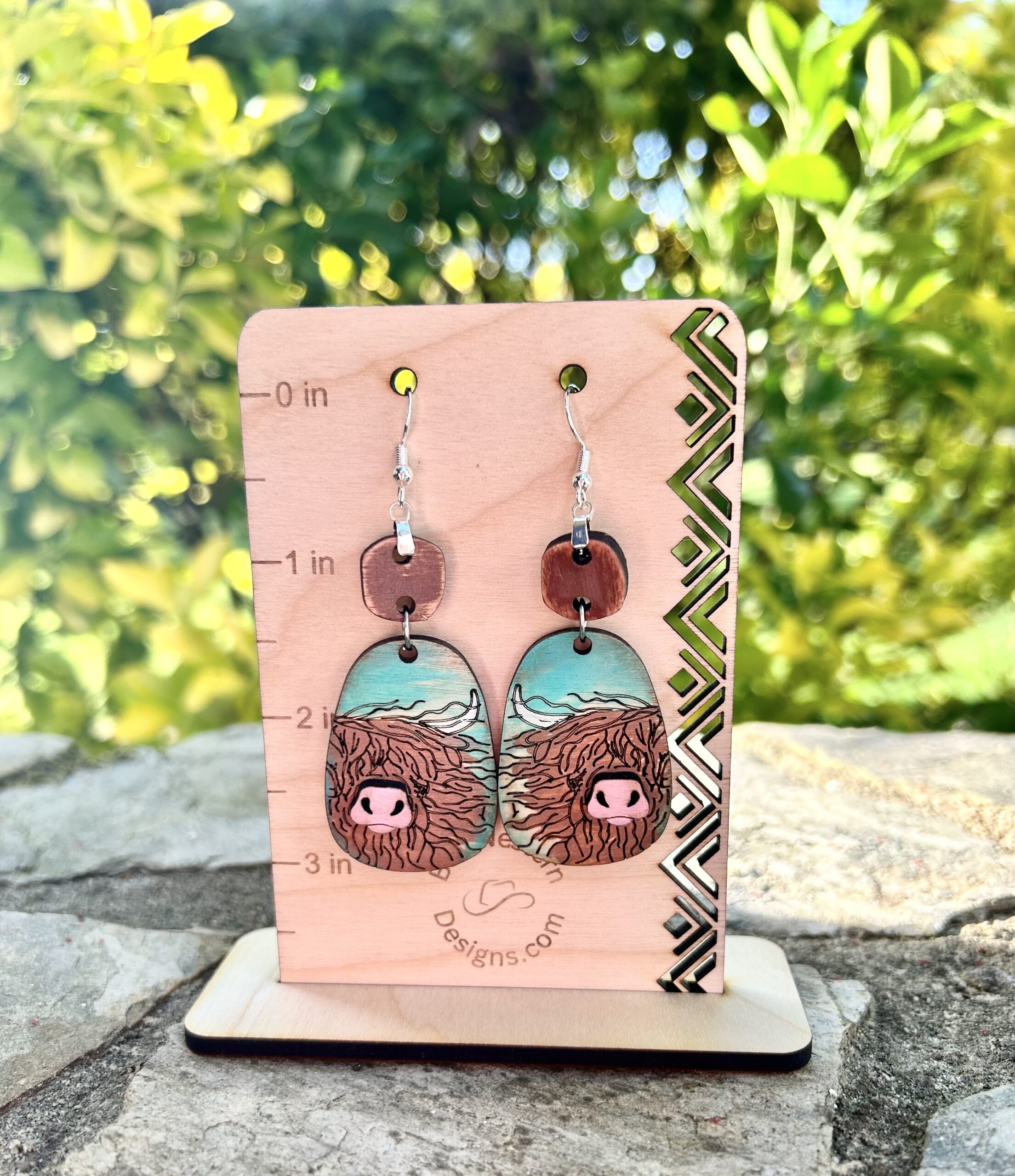Highland cow 3D earrings, Cow earrings, Dangle highland cow earrings Western style earrings, Highland Cow Earrings, Hand Painted Laser Cut Wood