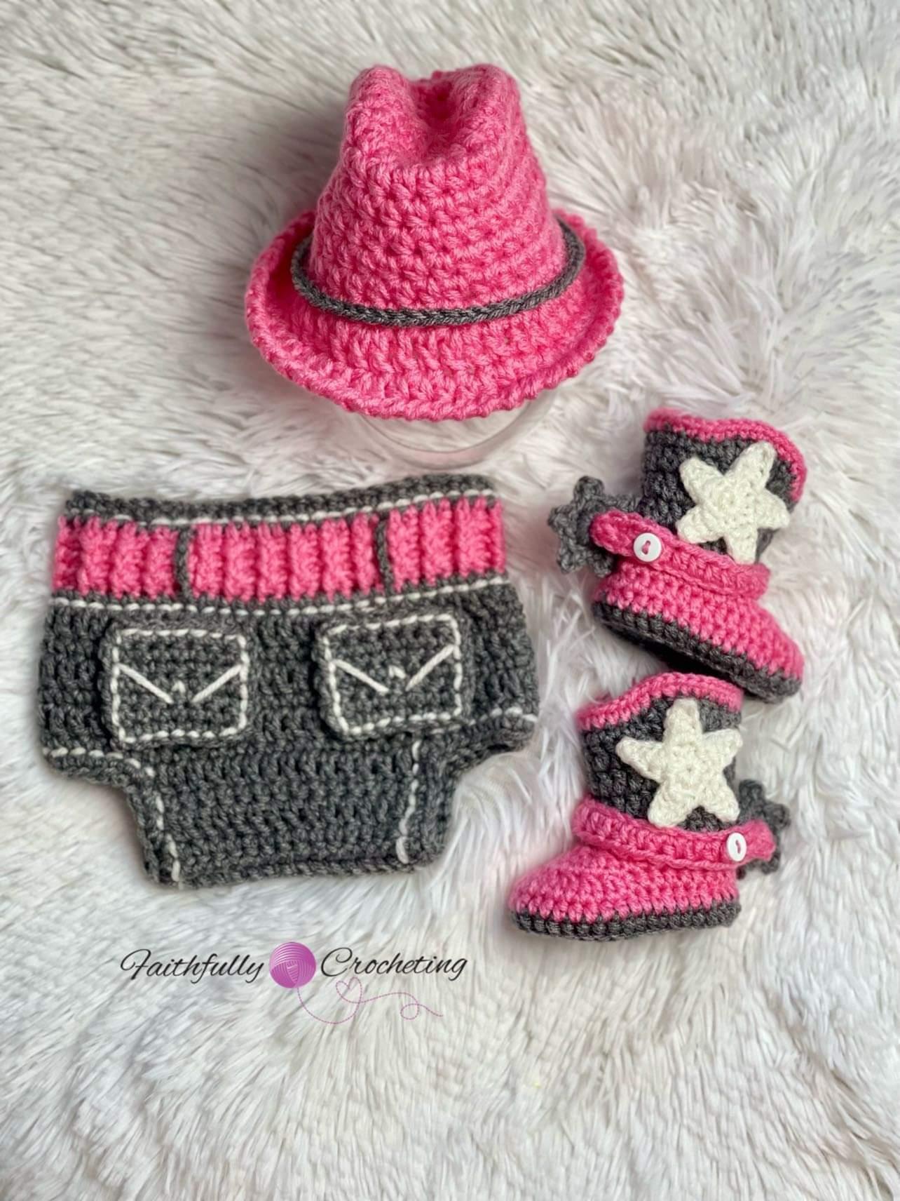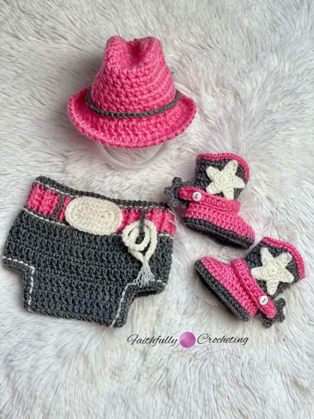 This listing is for a sweet Crochet Cowgirl hat, Cowgirl boots & diaper cover set!! This sweet Cowgirl Set is the perfect Newborn Photo Prop for any occasion.