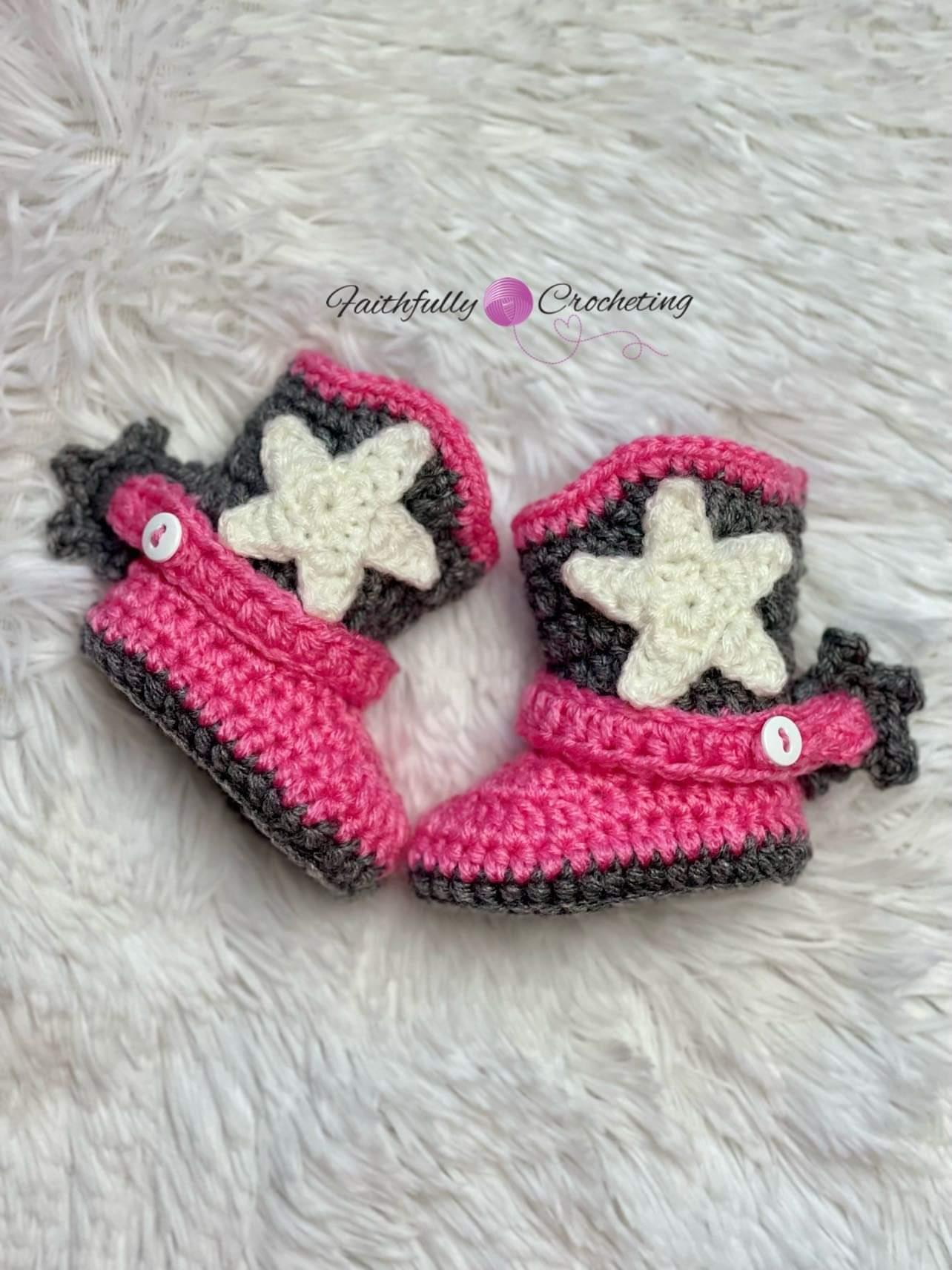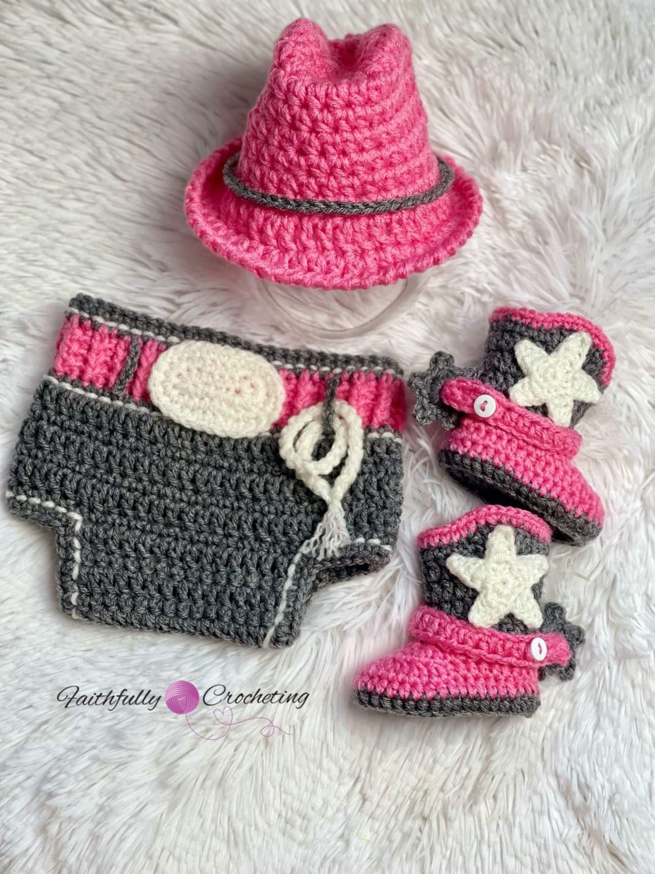 This adorable Cowgirl Set is created with a soft acrylic yarn in , Rose Pink & graybeard and ivory color .